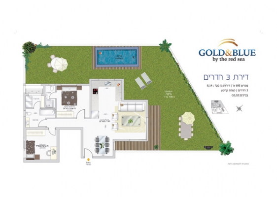 דירת-גן 3 חד', כ-80 מ"ר + כ- 100 מ"ר גינה לנוף (אופציה לבריכת שחיה)