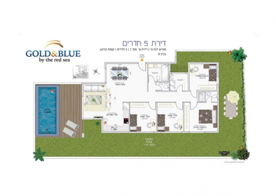 דירת-גן 5 חד', כ-120 מ"ר + כ- 150 מ"ר גינה לנוף (אופציה לבריכת שחיה)